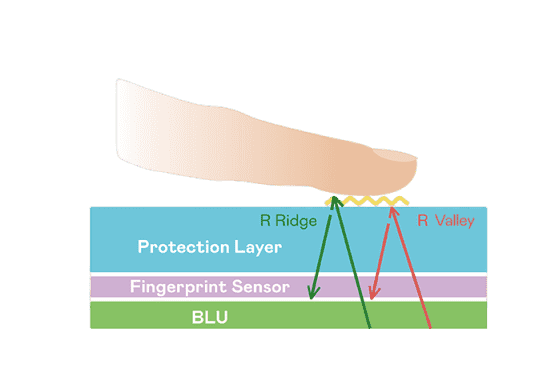 TFT 指纹扫描感测技术利用薄膜电晶体 (TFT) 当作光感测元件,,,,藉由非晶硅 (a-Si) 与低温多晶硅(LTPS)既有光电转换特性对不同波段光源进行吸收,,,使感测 IC 读取阵列感测元件的光漏电差异,,转换成数位灰阶影像。。。